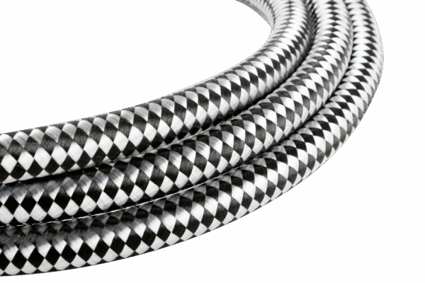 Jeder Innenleiter besteht aus 19 Litzen mit Ø 0,51 mm aus versilbertem 6N-S-OCC-Kupfer. Die Einzelleiter sind in PVC mit einem Durchmesser von 5,0 mm isoliert und werden durch eine zusätzliche PVC-Schicht auf 10,0 mm stabilisiert. Das gesamte Kabel wird durch ein dichtes 6N-S-OCC-Geflecht abgeschirmt und mit einem robusten PVC-Außenmantel versehen, der von einem eng verwobenen Baumwollgeflecht umhüllt ist.