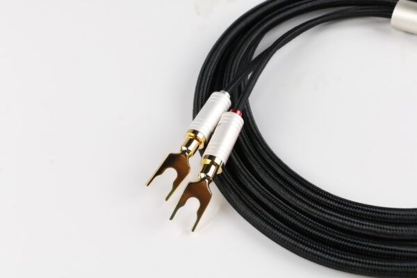 Blackberry SPADE/BANANA BB-108 ist ein hochwertiges OFC/Tinsel-Lautsprecherkabel mit LD-PE-Isolierung, Luftkammerstruktur, PVC/Textilmantel und vergoldeten austauschbaren Steckern – ideal für präzise, verlustarme HiFi- und Heimkinoverbindungen.
