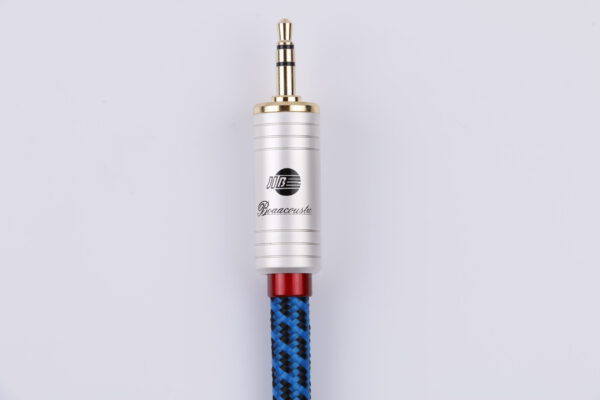 Der robuste PVC-Mantel mit blau-schwarzem Baumwollgeflecht sorgt für Flexibilität, mechanische Stabilität und lange Haltbarkeit. Die vergoldeten 3,5-mm-Klinkenstecker im perlweißen oder silbernen Metallgehäuse sind richtungsmarkiert und bieten eine korrosionsbeständige Verbindung. Klanglich überzeugt das Kabel durch saubere Mitten, klare Höhen und eine ausgewogene Stereobühne – ideal für portable Audiogeräte und kompakte HiFi-Systeme.