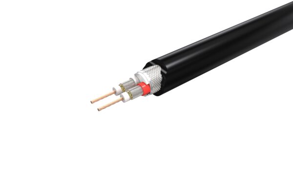 Die Signaladern bestehen aus zwei Leitern mit jeweils 19 × Ø 0,12 mm feindrahtigen 6N-S-OCC-Litzen. Die Skin- und FPE-Isolierung mit Ø 1,75 mm stabilisiert die Geometrie und reduziert elektrische Verluste. Ein PVC-Aufbau mit Ø 7,5 mm sorgt für zusätzliche mechanische Stabilität.
