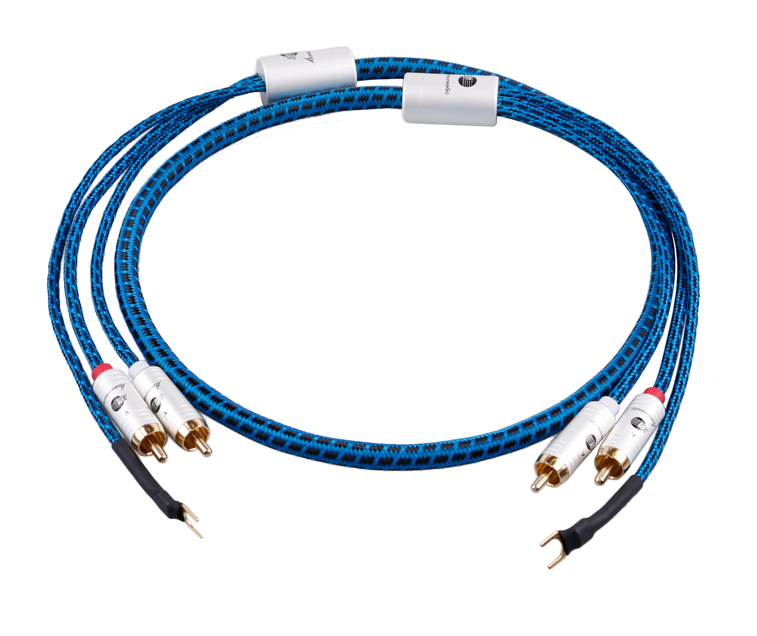Die PVC-Isolierung, das Baumwoll- und Nylongeflecht sowie die mehrlagige Schirmstruktur sorgen für hohe Flexibilität und zuverlässigen Schutz vor Zug- und Knickbelastungen. Die Metallgehäuse der Stecker und der vergoldete Y-Gabelschuh gewährleisten dauerhaft zuverlässige Kontaktqualität.