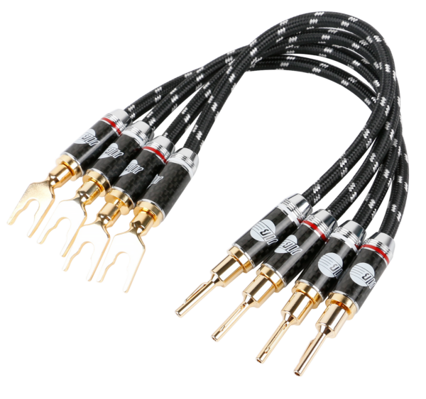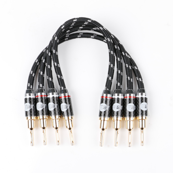 Der robuste PVC-Innenmantel (Ø 6,0 mm) mit eng geflochtenem Baumwollgewebe bietet hohen Schutz gegen Abrieb und Knicke. Die Konstruktion ist flexibel genug für enge Terminals, gleichzeitig aber stabil und langlebig. Die vergoldeten, aufschraubbaren Stecker mit Metall- und Carbonfaserhülse sind mechanisch stark belastbar, richtungsmarkiert und universell kompatibel mit Gabel- und Bananasteckern.