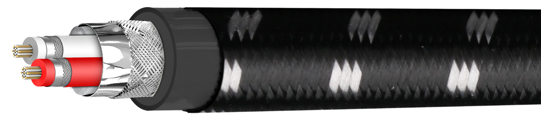 Das Kabel verfügt über eine dreistufige Schirmstruktur: Aluminiumfolie, ein 80 × 0,12 mm BC-Geflecht, eine weitere Aluminiumlage und ein zweites, dichteres 160 × 0,12 mm BC-Geflecht. Diese Kombination bietet einen sehr hohen Schutz vor elektromagnetischen und hochfrequenten Störsignalen. Dadurch bleibt die analoge Wiedergabe sauber, präzise und frei von Einstreuungen – selbst in komplexen Audio-Umgebungen.