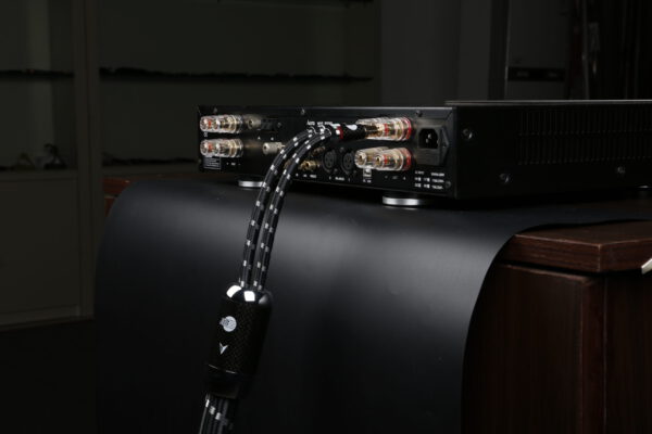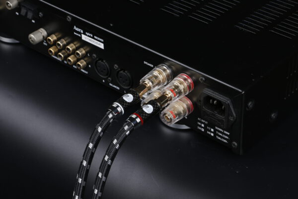 Evolution BLACK.sonic-25 (BEB-2025) – High-End-Lautsprecherkabel mit SC-, OFC- und Tinsel-Leitern, PE-Isolierung, stabilisiertem Aufbau und vergoldeten Carbon-Steckern. Ideal für leistungsstarke HiFi- und Studio-Systeme.