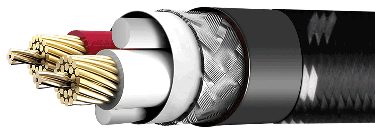 Eine zweifache Abschirmung aus Aluminiumfolie und dichtem BC-Kupfergeflecht (80 × Ø 0,12 mm) schützt zuverlässig vor elektromagnetischen und hochfrequenten Störungen. Die verseilte Konstruktion verbessert zusätzlich die EMV-Stabilität. Das Resultat ist eine störungsfreie, definierte Signalführung – ein klarer Vorteil in Umgebungen mit vielen elektrischen Störquellen, etwa im Studio oder in komplexen HiFi-Anlagen.